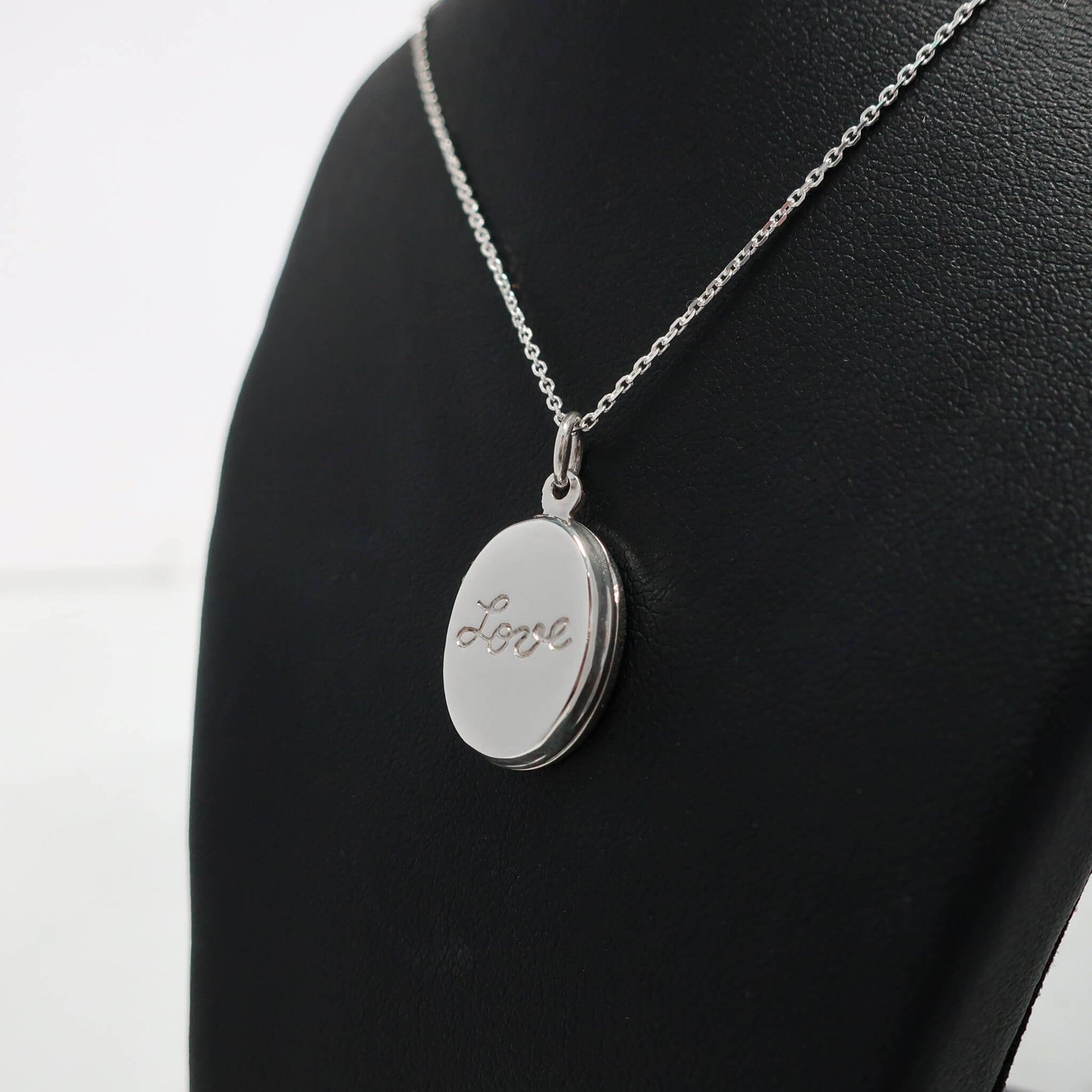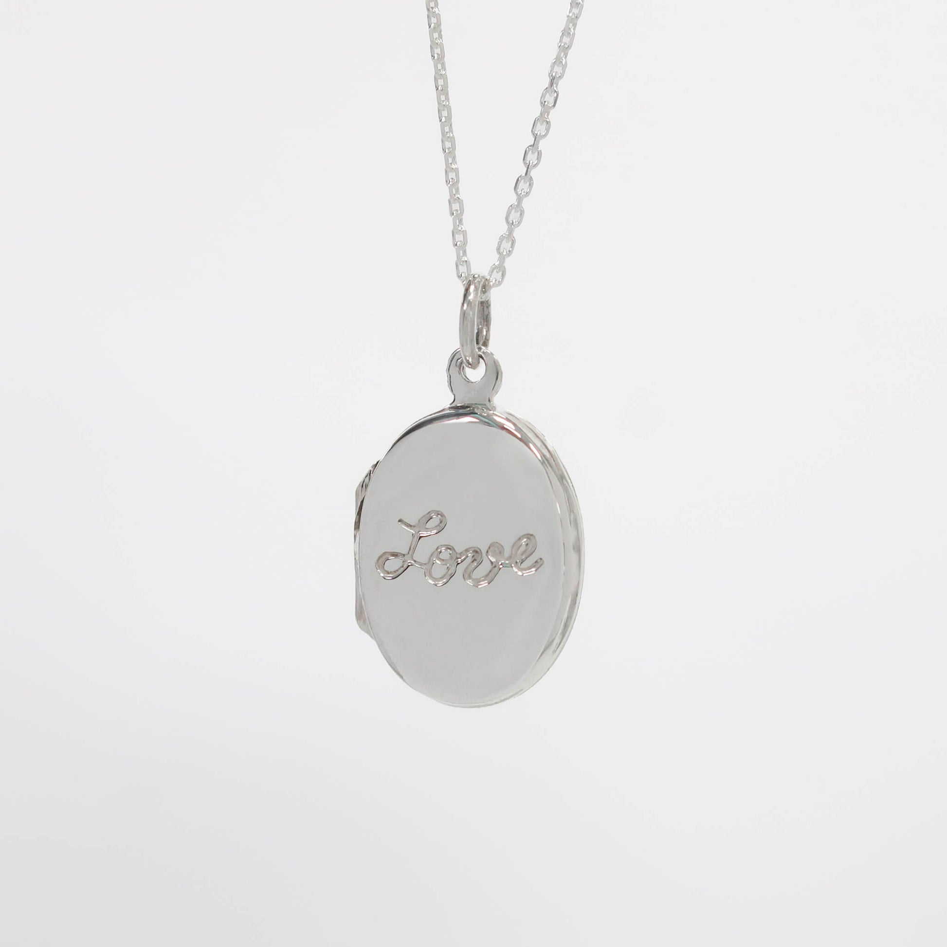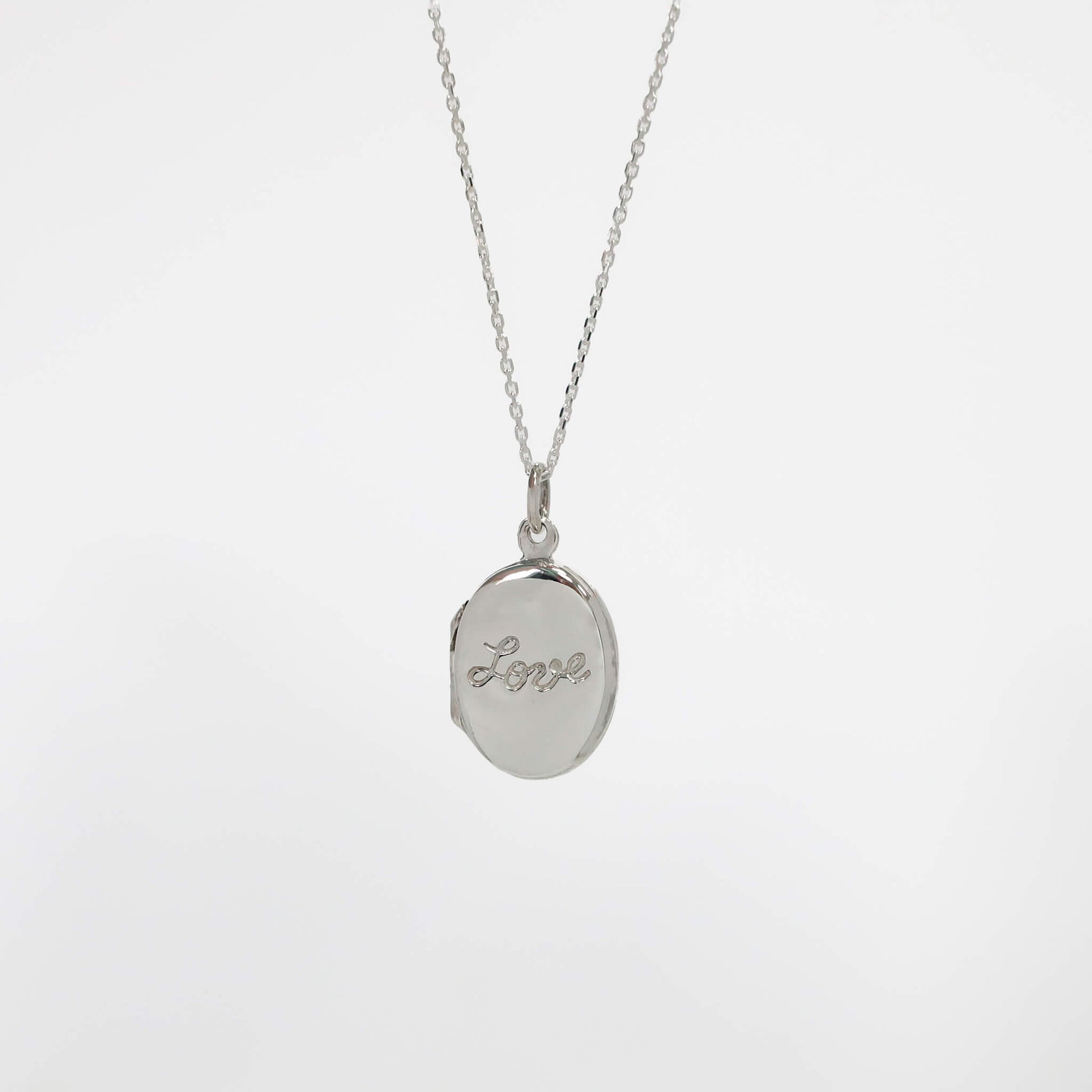 Love's beauty speaks for itself. This dainty silver locket necklace is crafted with sterling silver and comes complete with "love" engraved on the front.